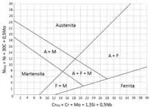 O diagrama de Schaeffler é um diagrama capaz de prever a fase estrutural final de aços que sofrem tratamento térmico com diluição (soldagem) a partir das composições do metal base e do consumível. É mais utilizado na soldagem de aços inoxidáveis. Cada região do diagrama poderá apresentar um tipo de falha diferente, dependendo da microestrutura, mas em geral o defeito principal que se busca evitar é a formação de martensita devido a sua susceptibilidade a trincas a frio.[1]