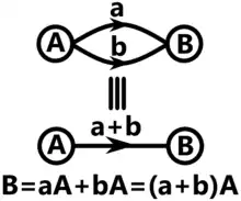 Onde é o loop que não possui um fluxo em comum com , para . O caminho direto é representado por . O representa o auto-loop da entrada (nó de início do caminho direto), que sempre possui valor unitário (para evitar absurdos), que sempre está presente no grafo, seja virtual ou efetivamente. representa o determinante do grafo entre os dois nós extremos.