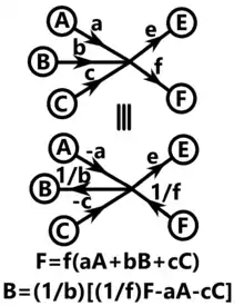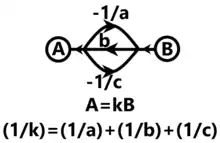 - Variáveis do primeiro tipo devem obedecer a uma lei de malha, análoga à Lei das Malhas de Kirchhoff, enquanto que variáveis do segundo tipo devem satisfazer uma análoga à Lei dos Nós de Kirchhoff (ver Leis de Kirchhoff).