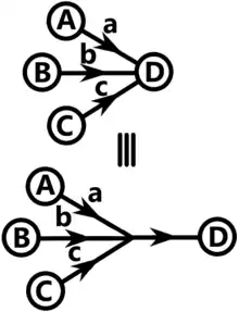 Supondo um nó A com um número n de entradas, tal que (nó dependente). Em prol da coerência do grafo, estará incorreto alterar n para um valor (é válido transformar um nó dependente em um isolado e vice-versa), seja adicionando ou subtraindo a quantidade de entradas ao converter algumas das existentes em saídas ou ao incidir novos fluxos no nó.