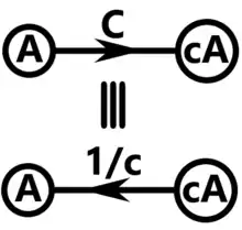 Acima, as funções fij estão associadas ao fluxo que o nó i recebe, isto é, são funções que operam o sinal do fluxo no fluxo, antes de chegar ao nó. Para sistemas desse tipo, a grandeza física que chega ao final de cada fluxo deve ser a mesma para todos os outros fluxos que estão entrando no nó para que se mantenha a consistência da abstração. A convenção mais comumente utilizada dispensa a necessidade da notação f como nome da função do fluxo, mas exige a ordem ij, em que i é o nó receptor e j é o nó emissor. Aqui cabe uma observação de nomenclatura, uma função f33 é chamada de auto-loop. Frequentemente, essas funções são simplesmente fatores multiplicativos (geralmente chamados de transmitâncias ou ganhos), por exemplo, fij(xj) = cijx j, em que c é um escalar, mas possivelmente uma função de algum parâmetro como a variável de transformação s da Transformada de Laplace. Os grafos de fluxo de sinais são frequentemente usados com sinais transformados por Laplace e, neste caso, a transmitância, c(s), é frequentemente chamada de função de transferência .