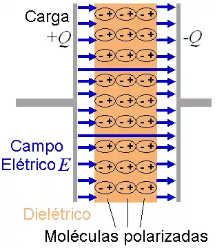 Uma propriedade dos dielétricos é a polarização das partículas elementares do material, quando este estiver sujeito à ação do campo elétrico.[2]