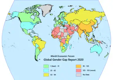 Diferenças Globais entre Gêneros é um ranking de igualdade de gênero publicado pelo Fórum Econômico Mundial desde 2006. A paridade entre homens e mulheres nas variáveis Participação e Oportunidade Econômica, Educação, Capacitação Política, e Saúde e Sobrevivência são analisadas e geram uma nota de 0 a 1 (1 sendo plena igualdade).[1]