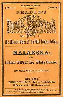 Em 1860, os editores Erastus e Irwin Beadle lançaram uma nova série de brochuras baratas, as "Beadle's Dime Novels". [1] Dime novel tornou-se um termo geral para brochuras semelhantes produzidas por várias editoras no início do século XX. O primeiro livro da série Beadle foi "Malaeska, the Indian Wife of the White Hunter", de Ann S. Stephens, datada de 9 de junho de 1860. [1] O romance foi essencialmente uma reimpressão da série anterior de Stephens, que apareceu na revista "Ladies' Companion" em fevereiro, março e abril de 1839. Vendeu mais de 65.000 cópias nos primeiros meses após sua publicação como uma dime novel. [2] As dime novel variavam em tamanho, mesmo na primeira série Beadle, mas tinham geralmente cerca de 6,5 por 4,25 polegadas (16,5 por 10,8 cm), com 100 páginas. Os primeiros 28 foram publicados sem ilustração de capa, em uma embalagem de papel cor de salmão. Uma impressão em xilogravura foi adicionada na edição 29, e as primeiras 28 foram reimpressas com capas ilustradas. Os livros custavam, é claro, dez centavos (moeda chamada nos EUA de "dime").