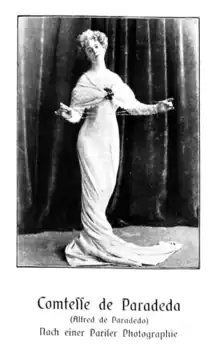 Entre 1899 e 1900, de Paradeda já era uma figura proeminente dos bailes uranianos berlinenses.[5] Durante um deles em 1903, ela foi recebida por Magnus Hirschfeld, que descreveu o encontro várias vezes em seus escritos posteriores.[6] Ele mencionou que ela usava um vestido de noite de seda vermelha parisiense, com cadarços que valiam mais de 2 000 francos. De Paradeda frequentava o local que Hirschfeld visitava e estava despertando o interesse dos círculos sociais locais, então Hirschfeld iniciou a conversa com ela.[4]
