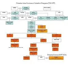 No primeiro século, o reinado alternou entre os descendentes de Afonso e os de seu irmão, Fruela da Cantábria. Com a morte do neto de Afonso I,Afonso I (842), os descendentes de Fruela tomaram o trono permanentemente, liderados por Ramiro I. Após a morte de Afonso II (910), o reino foi dividido entre seus filhos. O século X foi, portanto, caracterizado por disputas familiares, que só foram encerradas pela sucessão de Bermudo II em 984. Durante esse período, porém, o Reino de Pamplona ficou mais poderoso e em 1034 os pamploneses capturaram Leão. O domínio da dinastia foi encerrado três anos depois, quando Bermudo II foi morto em batalha contra seu cunhado, Fernando I, da dinastia gimena de Pamplona, que depois assumiu o trono.