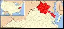 A Diocese abrange os seguintes condados do norte e nordeste da Virgínia[1]: