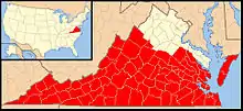 A Diocese de Richmond abrange os condados do sul e da costa oriental da Virgínia. São eles[3]: