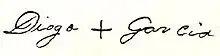 O nome "da Cruz" não é sobrenome familiar, e decorre do fato do Capitão Diogo apor uma cruz à sua assinatura. O historiador Ricardo Gumbleton Daunt sugere que essa prática talvez tenha ocorrido ou por devoção, ou para diferenciá-lo do célebre avô Diogo Garcia. Diogo Garcia foi casado com Júlia Maria da Caridade, a segunda das três irmãs chamadas Três Ilhoas, que são tronco de numerosas famílias do sul de Minas Gerais.