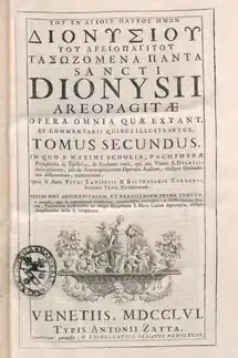 - Corrigan, Kevin; Harrington, Michael. "Pseudo-Dionysius the Areopagite". In Zalta, Edward N. (ed.). Stanford Encyclopedia of Philosophy.