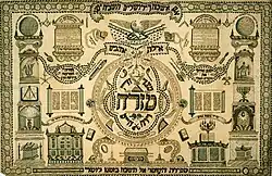 A Mizrá (literalmente, "Leste") é uma placa ou outra decoração de parede que é colocada na parede oriental de muitas casas de judeus na Diáspora a oeste de Israel, a fim de marcar a direção de Jerusalém para a qual a oração é focada.[7][8][9] Uma placa Mizrá é geralmente uma peça artística e ornamentada, sendo escrita em caligrafia e apresentando um panorama de Jerusalém. As tapeçarias de Mizrá normalmente apresentam a palavra hebraica Mizrá (hebraico: מזרח), e podem incluir o versículo da Torá que afirma: "Desde o nascer do sol até o seu ocaso, o nome do Senhor deve ser louvado" (cf. Salmos 113:3).[7][9]