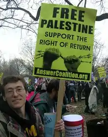 Para o advogado Stephen Halbrook, "Os árabes palestinos têm o direito de voltar para suas casas e propriedades assumidas por israelenses, de receber indenização justa pela perda de vidas e propriedades e de exercer autodeterminação nacional." Murray Rothbard detalha a "agressão de Israel contra os árabes do Oriente Médio", as políticas confiscatórias e sua "recusa em permitir que esses refugiados retornem e recuperem as propriedades que lhes foram tiradas".