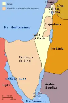 Durante a Guerra dos Seis Dias, outro êxodo palestino ocorreu. Cerca de 280 mil a 350 mil palestinos fugiram ou foram expulsos[17] da Cisjordânia, Faixa de Gaza e Colinas de Golã como resultado da Guerra dos Seis Dias; aproximadamente 120 mil a 170 mil deles também eram refugiados da primeira guerra, fugindo pela segunda vez.[10]