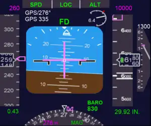 A forma exata do diretor de voo varia conforme o tipo do instrumento e/ou fabricante da aeronave e seus aviônicos.