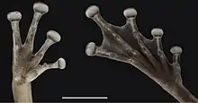 Imagem dos discos adesivos da Scinax onca.