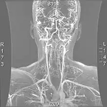 - Provenzale JM, Sarikaya B (outubro de 2009). «Comparison of test performance characteristics of MRI, MR angiography, and CT angiography in the diagnosis of carotid and vertebral artery dissection: a review of the medical literature». AJR Am J Roentgenol. 193: 1167–74. PMID 19770343. doi:10.2214/AJR.08.1688