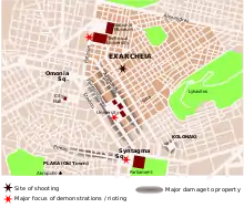 Poucos minutos após a morte do estudante, manifestantes furiosos tomaram as ruas de Exarqueia e adjacências, irrompendo em violentos confrontos com a polícia. Simultaneamente, manifestações similares também ocorreram em outras cidades gregas, incluindo Tessalônica, Janina, Comotini, Castória, Patras,[24] Trípoli, Volos, Trícala, Mitilene, Agrínio, Cavala, Corfu, Pireu, Chania, Heraclião, Rodes, Carditsa, Lâmia, Stylida, Drama, Xanti,[25] Lagkadas,[26] Cozani, Alexandrópolis, Lárissa e Corinto.