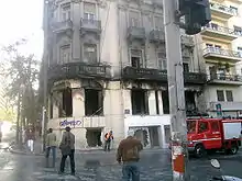 - «ΣΚΑΪ | Ολική καταστροφή». Skai.gr. Consultado em 11 de dezembro de 2008. Arquivado do original em 17 de julho de 2011, «Ζημιές στη Βιβλιοθήκη Δικαίου». Kathimerini (em grego). Athens. 10 de dezembro de 2008. Consultado em 12 de dezembro de 2008