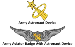 Com o início da Era Espacial, todos os distintivos de Aviador dos Estados Unidos podem ser atualizados para o Distintivo de Astronauta, para os militares que se tornam astronautas .