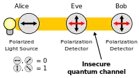 Em contraste com a física clássica, o ato de medir é parte integrante da mecânica quântica.[4] Em geral, medir um estado quântico desconhecido muda esse estado de alguma maneira. Isso é uma consequência da indeterminação quântica e pode ser explorado para detectar qualquer interceptação na comunicação (que necessariamente envolve medição) e, mais importante, para calcular a quantidade de informação que foi interceptada.[5]