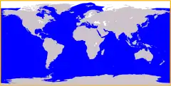 No mundo moderno, a baleia assassina, a baleia-azul e o grande tubarão-branco têm distribuição cosmopolita, estendendo-se pela maior parte dos oceanos da Terra. A vespa Copidosoma floridanum é outro exemplo, pois é encontrada em todo o mundo. Outros exemplos incluem humanos, gatos, cachorros, a abelha melífera ocidental, o líquen folioso Parmelia sulcata e o gênero de moluscos Mytilus.[7] O termo também pode ser aplicado a algumas doenças. Pode resultar de uma ampla gama de tolerâncias ambientais[8][9] ou da dispersão rápida comparada ao tempo necessário para a especiação.[10]