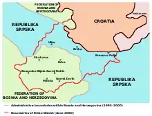 O distrito de Brčko, embora teoricamente seja administrado por ambas as entidades federadas bósnias, é na prática uma terceira entidade da República da Bósnia e Herzegovina, tendo os mesmos direitos da República Sérvia da Bósnia e da Federação da Bósnia e Hezergovina.