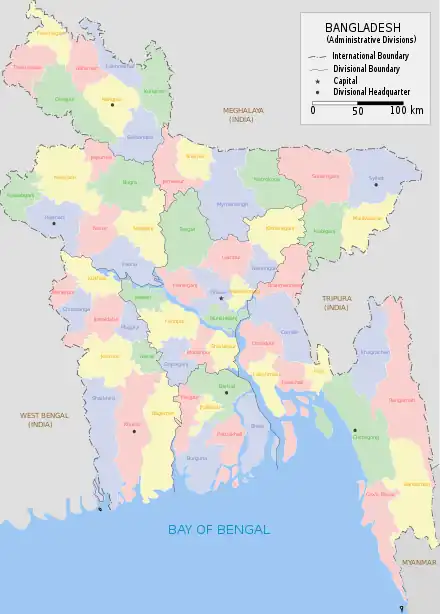 | Brahmanbaria (distrito) | ব্রাহ্মণবাড়ীয়া | Chatigão | 2808 | 1927 | 1457 |