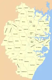 - «Parish and historical maps». Land & Property Information. Governo de Nova Gales do Sul. 2012. Consultado em 5 de janeiro de 2015. Arquivado do original em 5 de janeiro de 2015