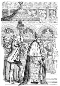 O ofício continuou a se desenvolver nessa direção a partir do século XIV, principalmente a partir de Andrea Dandolo, porque o Doge, que presidia todos os órgãos essenciais, tornou-se cada vez mais um visionário do plano divino e a personificação da relação especial de Veneza com Deus.[11]