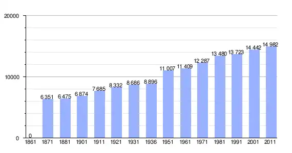 | Variação demográfica do município entre 1861 e 2011[3] |