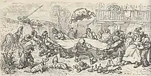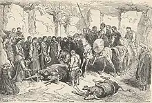 Tendo acabado a carne, os cabreiros deitaram depois bolotas secas sobre as peles, bem como meio queijo seco mais duro que argamassa, tendo o corno de vinho andado em roda viva como alcatruz de nora.