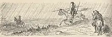 "O lavrador, vendo vir contra si aquela figura brandindo a lança sobre o seu rosto, julgou que morria e respondeu ao cavaleiro: - Estou a castigar este meu criado que me guarda um rebanho de ovelhas e é tão descuidado que perde uma em cada dia. E ele diz que o castigo por velhacaria, para não lhe pagar a soldada que lhe devo".[3]:73