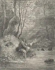 Despediu-se D. Quixote do cabreiro, e, tornando a montar em Rocinante, mandou a Sancho o acompanhasse, o que ele fez a pé, de muito má vontade.[8]:41 Mas enfim — disse Sancho — o que é que Vossa Mercê pretende fazer em tão remotas brenhas? — Não te disse já, Sancho — respondeu D. Quixote — que pretendo imitar a Amadis desempenhando-me aqui do papel de desesperado, de sandeu e de furioso, para imitar juntamente ao valoroso D. Roldão, quando topou numa fonte os sinais de ter Angélica, a bela, cometido vileza com Medoro, e de consternado se tornou louco, arrancou as árvores, enturvou as águas das claras fontes, matou pastores, destruiu gados, abrasou choças, derribou casas, arrastou éguas e fez outras cem mil insolências dignas de eterno renome e escritura?[8]:44