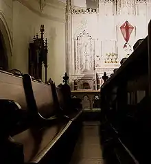 Nas igrejas anglicanas que seguem o Sarum Use, vestimentas e enforcamentos carmesim são colocados em serviço no quinto domingo da Quaresma - substituindo a matriz quaresmal (tecido de musselina cru) - e as vestimentas são carmesim até (e inclusive) o sábado santo. Refletindo o recente afastamento da observância de Passiontide como uma estação distinta, os recursos litúrgicos da Adoração Comum da Igreja da Inglaterra sugerem vermelho somente para a Semana Santa (com exceção da Eucaristia de Quinta-Feira Santa).