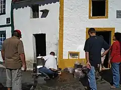 Lavagem dos utensílios após a vindima/pisa das uvas.