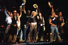 - Moss, Cory. «Madonna Twirls Rifle, Lifts Up Her Kilt At Opener» (em inglês). MTV News. Consultado em 16 de Novembro de 2019