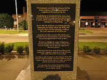 No fim de 2008, o Clube Rotary de Griffith ergueu um memorial em Banna Avenue, a rua principal de Griffith, para honrar o 30º aniversário do homicídio de Donald Mackay.[12][23] A estátua do próprio Donald Mackay é um busto de mármore com uma placa com a inscrição "Tudo o que é necessário para o triunfo do mal é os homens bons não fazerem nada."