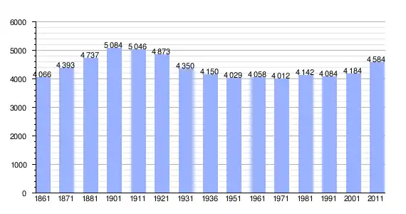 | Variação demográfica do município entre 1861 e 2011[3] |
