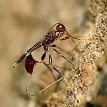 | Female doryctine ovipositing on beetle larvae inside wood | |