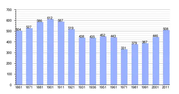 | Variação demográfica do município entre 1861 e 2011[3] |
