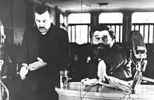 Capitão Predrag Raković, General Dragoljub Mihailovic e Acadêmico Dragiša Vasić, após libertação de um ambiente hostil durante a Operação Schwarz, maio de 1943, no Vale do Lim. Atrás do General, Major Miljan Janketic, Comandante do Batalhão de Apoio.