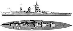 | Blindagem | Cinturão: 225 mm Convés: 115 a 125 mm Anteparas: 180 a 210 mm Torres de artilharia: 150 a 330 mm Torre de comando: 130 a 270 mm |