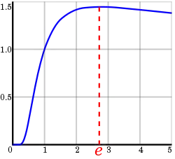 Este máximo ocorre precisamente em x = e.[43] (Pode ser verificado que a derivada de ln e é zero somente neste valor de x.)