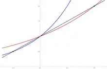 para todo x real, com a igualdade se, e somente se, x = 1. Além disso, e é a única base da exponencial que para a desigualdade ax ≥ x + 1 se mantém para todo x.[42] Este é um caso limite da desigualdade de Bernoulli.