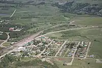 O diagrama seguinte representa as localidades num raio de 36 km ao redor de East Glacier Park Village.