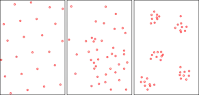 Determinam os padrões de distribuição de indivíduos ou populações em uma área de origem, vários fatores influenciam nesta distribuição como disponibilidade de recursos, predadores e parceiros sexuais em potencial[12]. Esses padrões podem ser classificados como agregados, aleatórios ou uniformes. Para se medir de qual padrão uma população se aproxima é utilizado um método que relaciona a razão entre a variância e a média estimada de uma população de indivíduos. Se o resultado foi maior do que 1, este padrão é agregado; se é igual a 1, é aleatório; se é menor que 1 é uniforme[13]. Mesmo com a possibilidade de competição intraespecífica a vida agregada de indivíduos ela traz diversos benefícios como proteção contra predadores, facilidade na caça ou procura de alimento e facilidade na reprodução, isso ocorre com flamingos, zebras, cardumes de peixes e outros animais.