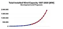 A energia renovável é a energia que vem de recursos naturais, como luz solar, vento, chuva, marés e calor geotérmico, que são renováveis (repostos naturalmente). Em 2015, cerca de 19% do consumo global de energia final veio de fontes renováveis.[19] Durante os cinco anos do final de 2004 a 2009, a capacidade mundial de energia renovável cresceu a taxas de 10 a 60 por cento ao ano para muitas tecnologias. Para energia eólica e muitas outras tecnologias renováveis, o crescimento acelerou em 2009 em relação aos quatro anos anteriores.[20] Mais capacidade de energia eólica foi adicionada em 2009 do que qualquer outra tecnologia renovável. No entanto, a energia fotovoltaica conectada à rede aumentou mais rapidamente de todas as tecnologias renováveis, com uma taxa de crescimento médio anual de 60% para o período de cinco anos.[20]