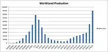 Estes níveis de produção, nomeadamente de cobre e chumbo, só voltariam a ser igualados durante a Revolução Industrial.[nt 2][33][39][40] A Ibéria detinha 40% da produção mundial de chumbo.[33] A elevada produção deste metal era um subproduto da exploração intensiva de prata, que atingiu as 200 t anuais.[31][37][41] Estima-se que o stock de prata de Roma no auge da produção, por volta de meados do século II, se elevasse a 10 000 t, ou seja, quatro a dez vezes mais do que a soma de toda a prata existente na Europa e no Califado cerca do ano 800.[36][37] Um indício da escala da produção metálica romana é dada pela poluição de chumbo no manto de gelo da Gronelândia, cujos níveis quadruplicaram em relação à Pré-história durante o período imperial e depois voltaram a descer.[36][37]