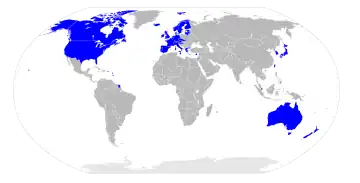 Economias avançadas, classificadas pela FMI em Abril de 2008 no World Economic Outlook, destacadas em azul.[1]