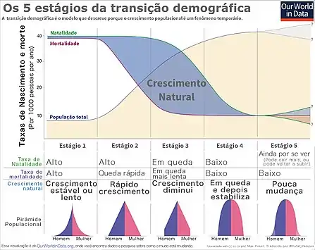 - Em segundo lugar, descreve o período de transformação de uma sociedade pré-industrial (caracterizada por ter taxas de natalidade e de mortalidade altas) a uma moderna ou pós-industrial (caracterizada por ter ambas as taxas baixas).[1]